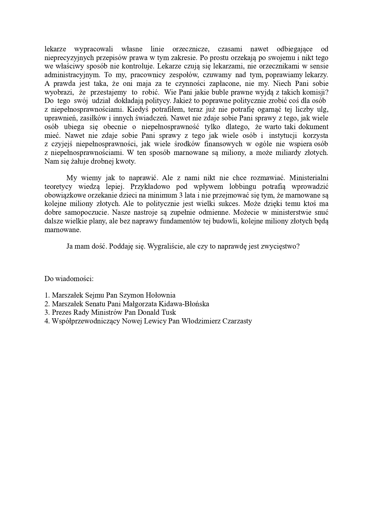 Lider Związkowej Alternatywy Pracowników Zespołów ds. Orzekania o Niepełnosprawności, Adam Szyma wysłał dramatyczne pismo do szefowej MRPIPS, Agnieszki Dziemianowicz-Bąk, w którym informuje o fatalnej sytuacji w branży. Poniżej list (przesłany też m.in. do premiera, Donalda Tuska i marszałka Sejmu, Szymona Hołowni).